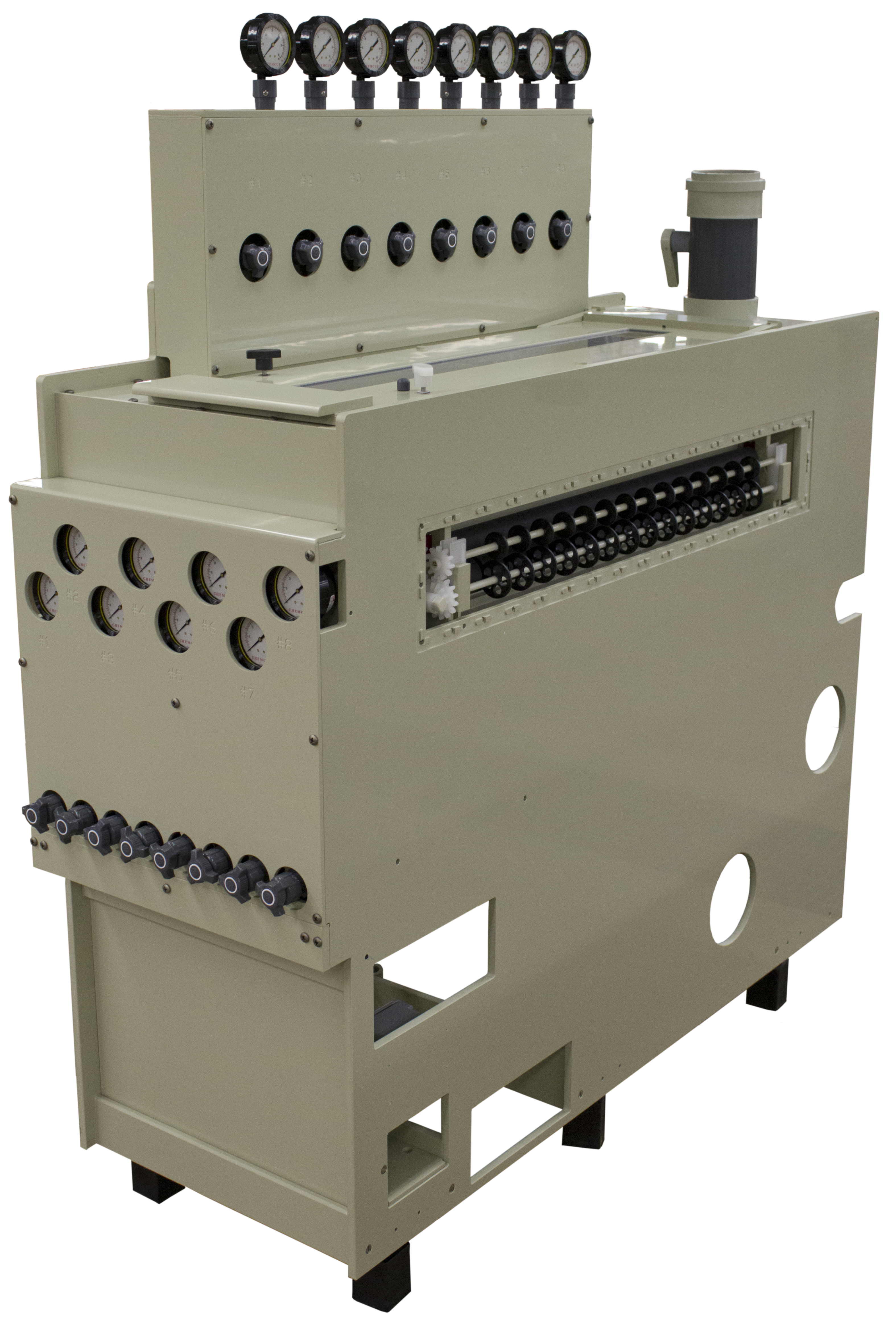 The EAM is a piece of equipment that you can add to your modular-built etcher. It provides you with a small virtual etch chamber that contains multiple spray tubes that each can be set to different spray pressures. This allows you to focus more spray pressure on the edge or in the middle of the panel. Originally the EAM was made for creating adjustments on copper-plated panels that have tapering from the plating process. Although its original purpose was correcting variation from plating, it has also proven to be useful in controlling side-to-side etch uniformity. By giving you full control of how much you etch in a particular location, it gives you the freedom to add independent spray zone control to any etching equipment you have.