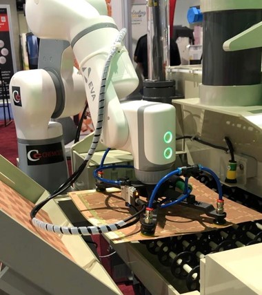 One of the new features Chemcut got a chance to show at IPC was the EVA loader. EVA is a robotic arm that can automatically load and unload panels.