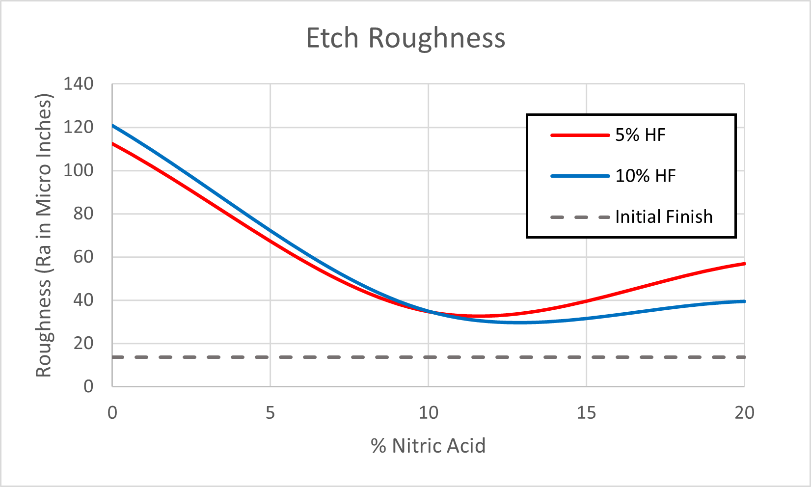 Nitric acid can also be used to control the finish of the etch. If you have a particular roughness that you are looking for, you can vary the nitric acid to get the surface roughness you need (see Fig 2).
